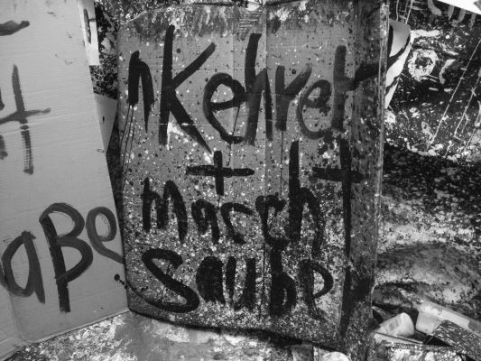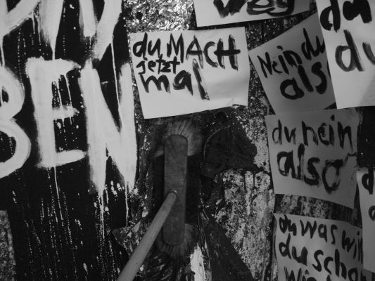 Als Zeichen und Protest gegen die Gewalttätigkeiten gegen meine künstlerische Arbeit die sich zwischen 2018 und 2020 ereignet haben. Daran haben sich Vertreter der deutschen Presse umfangreich beteiligt