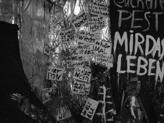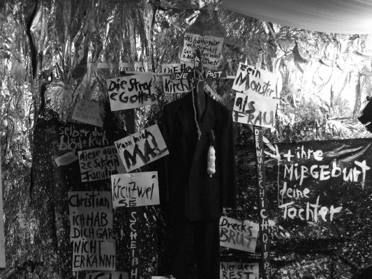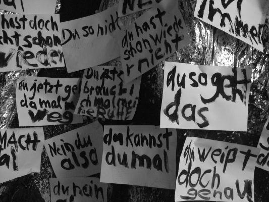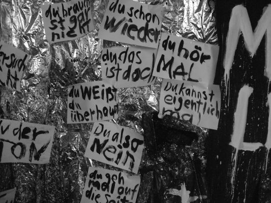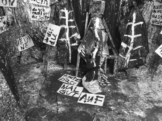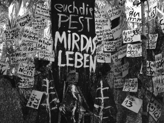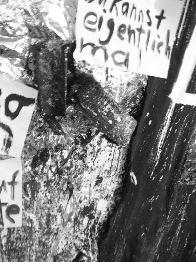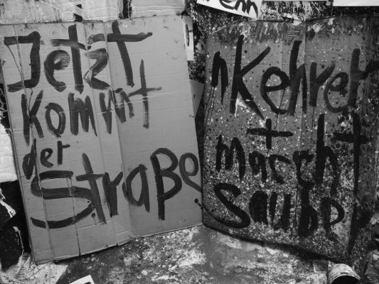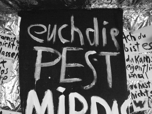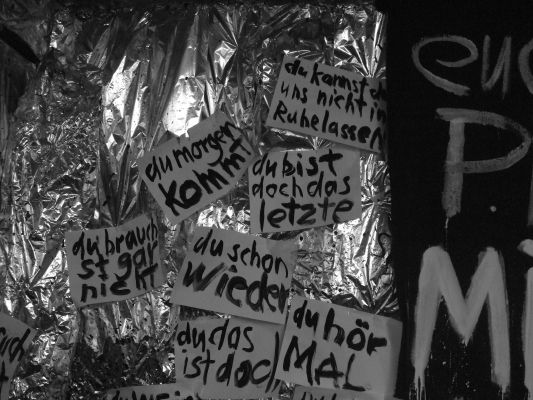 Als Zeichen und Protest gegen die Gewalttätigkeiten gegen meine künstlerische Arbeit die sich zwischen 2018 und 2020 ereignet haben. Daran haben sich Vertreter der deutschen Presse umfangreich beteiligt